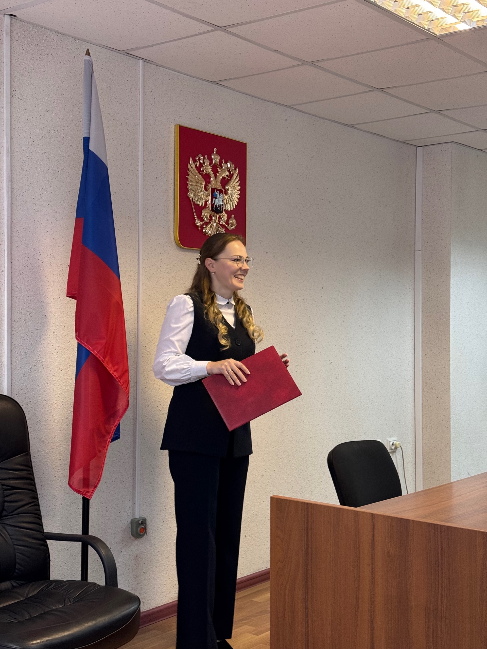 16 октября 2025 года в Ленинском районном суде г.Челябинска состоялось торжественное принесение присяги судьёй Хакимовой Еленой Юрьевной, назначенной на должность Указом Президента Российской Федерации от 06 октября 2025 года №706 «О назначении судей федеральных судов и о представителях Президента Российской Федерации в квалификационных коллегиях судей субъектов Российской Федерации». Напутственные слова и слова поздравления Елене Юрьевне выразила исполняющая обязанности председателя Ленинского районного суда г.Челябинска Рогачева Екатерина Талгатовна, а также коллектив судей Ленинского района г.Челябинска. Елена Юрьевна начала свою трудовую деятельность в 2007 году с должности специалиста 1 разряда Сафакулевского районного суда Курганской области, затем с 2012 по 2013 год состояла в должности секретаря суда отдела делопроизводства Челябинского областного суда. Позднее в 2013 году переведена на должность секретаря судебного заседания отдела обеспечения судопроизводства по уголовным делам Челябинского областного суда. С 2013 по 2025 года состояла в должности помощника судьи Челябинского областного суда. Коллектив Ленинского районного суда г.Челябинска и аппаратов мировых судей Ленинского района г.Челябинска поздравляет Елену Юрьевну с вступлением на должность судьи и желает добросовестного исполнения своих служебных обязанностей! С уважением, |